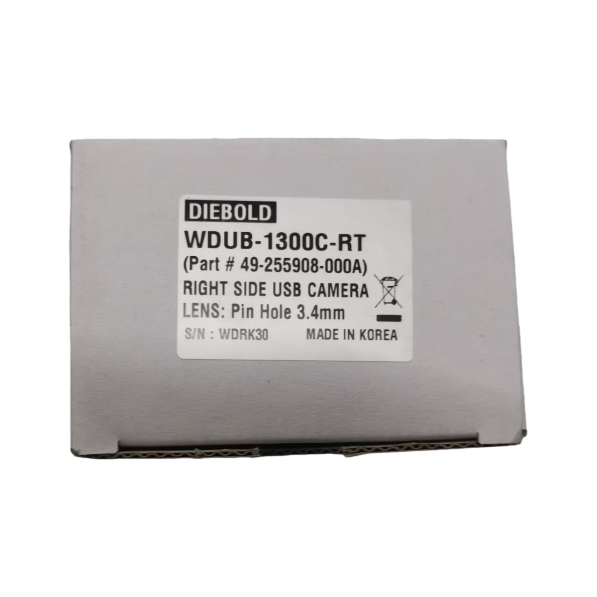 Diebold WDUB-13DDC-RT Micro Camera diidentifikasi dengan nomor bagian 49255908000A dan nomor seri WDRI300095, memastikan keaslian dan jaminan kualitas.